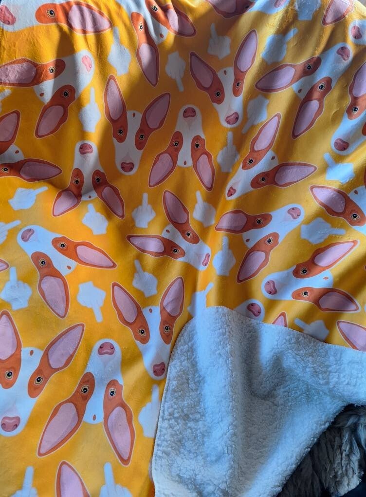 Bedrukt aan 1 zijde, de andere zijde is heerlijk zachte nep schapenvacht :)