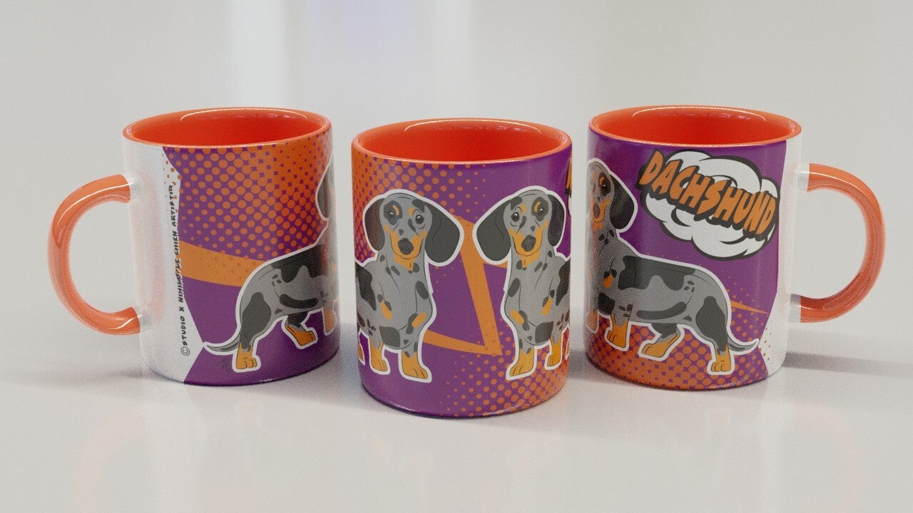 Teckel gladharig COMIC stijl paars/oranje beker! diverse kleurslagen!