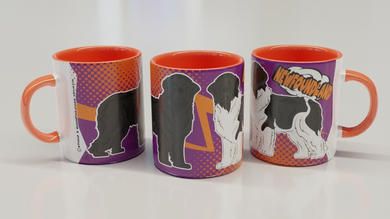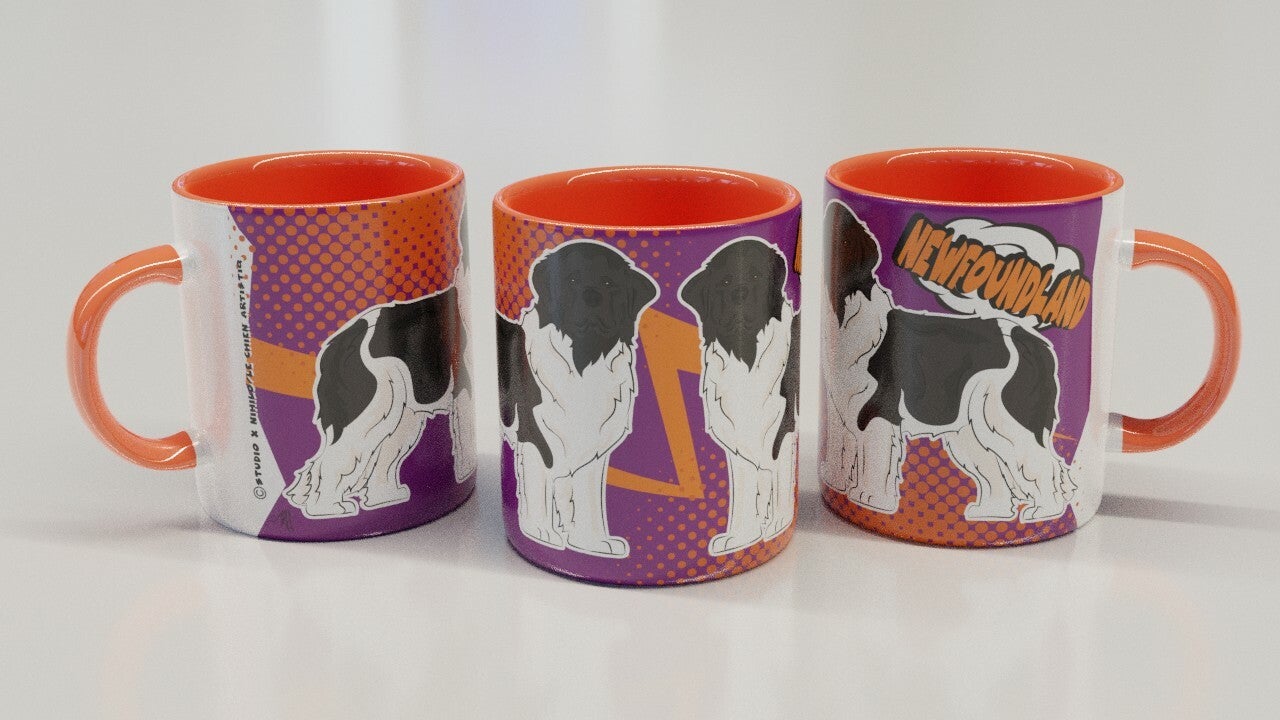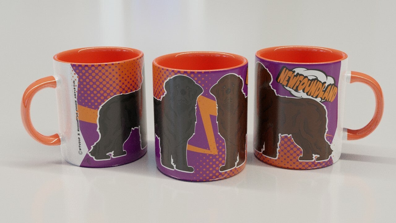 Newfoundlander COMIC stijl paars/oranje beker! diverse kleurslagen!