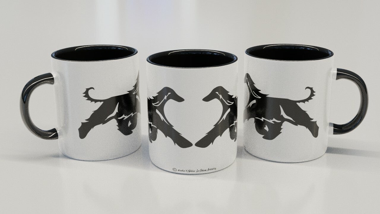 Afghaanse Windhond dravend! ! CLASSY wit / zwart beker