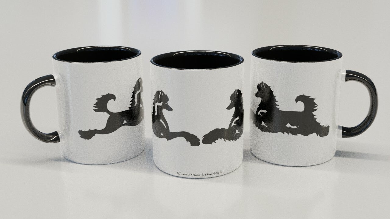 Chinese Naakthond en Powderpuff ! CLASSY wit / zwart beker