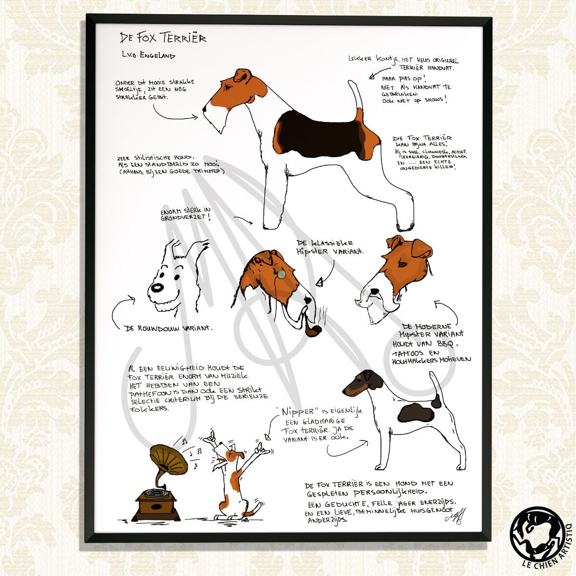 Handgetekend en geschreven door Marianne Felix, het brein achter Le Chien ArtistiQ