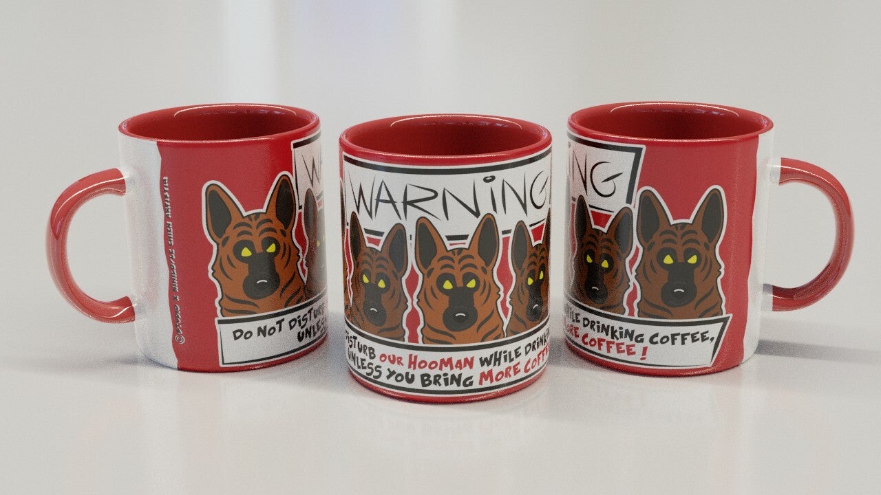 Hollandse Herdershond kortharig ! ochtendhumeur beker ;-) rood Angry Dogs serie