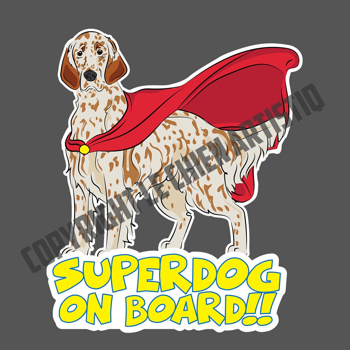 Engelse Setter SUPERDOG ON BOARD vinyl sticker! beide kleurslagen!