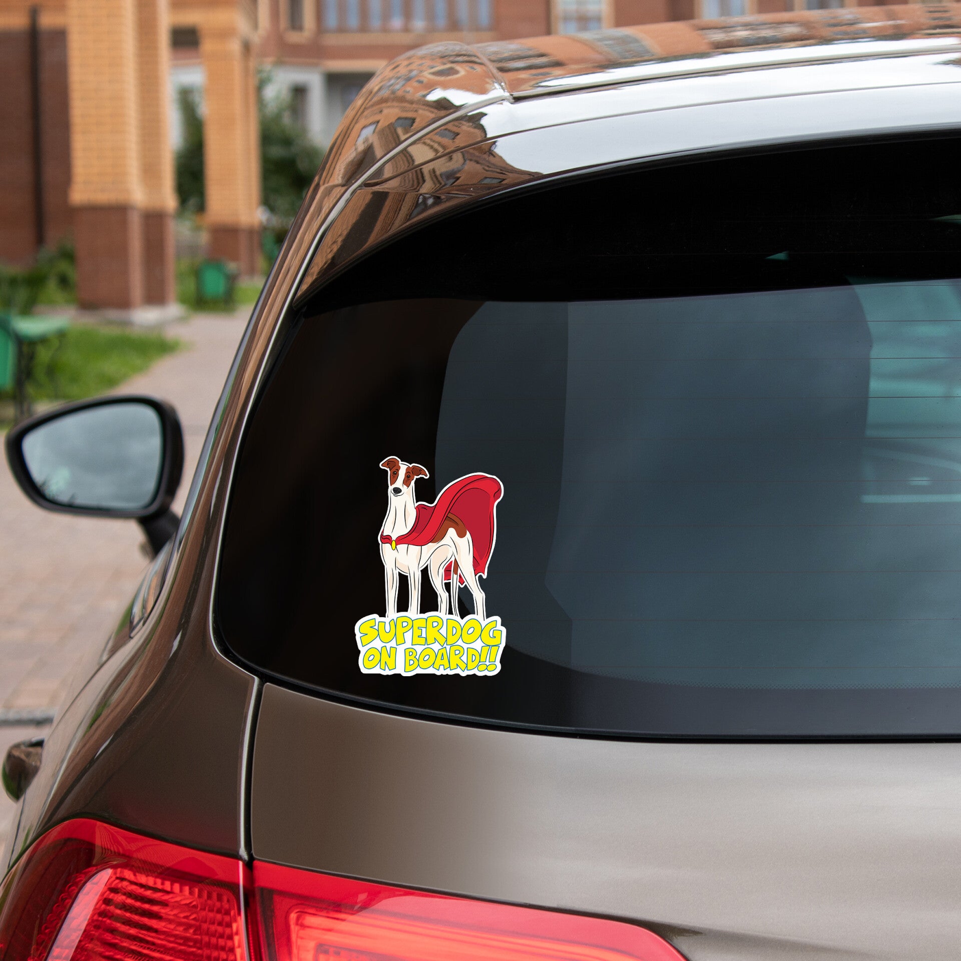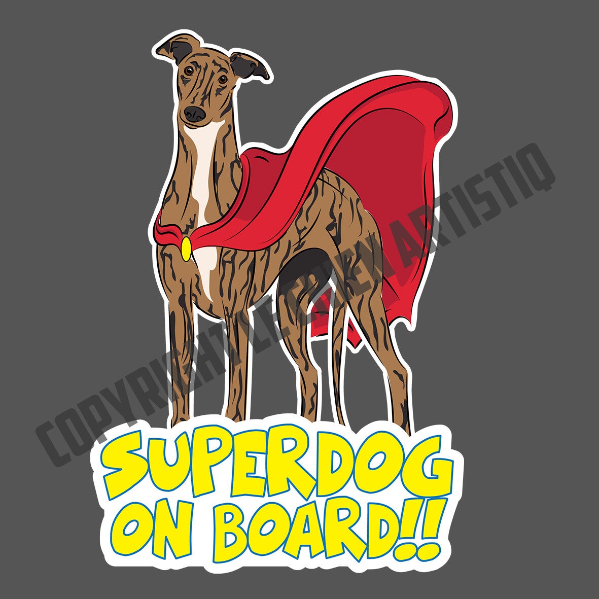 Greyhound SUPERDOG ON BOARD vinyl sticker! diverse kleurslagen!