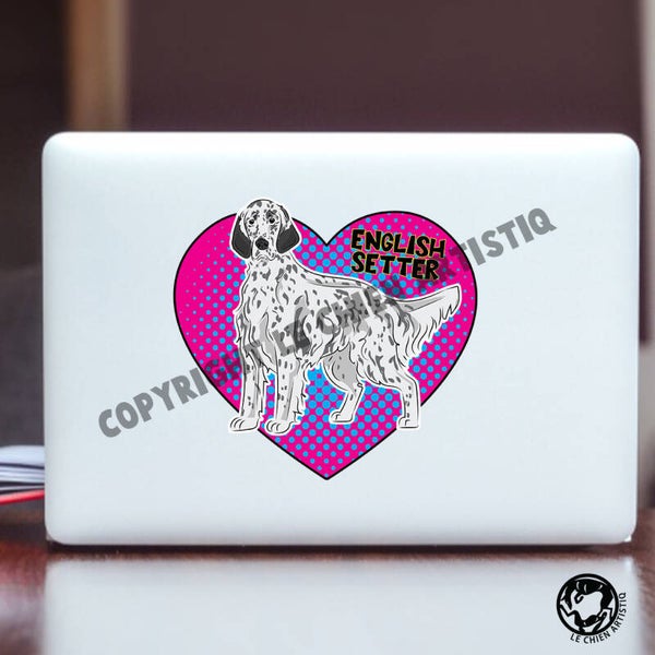 Engelse Setter COMIC stijl vinyl sticker! blue & orange belton