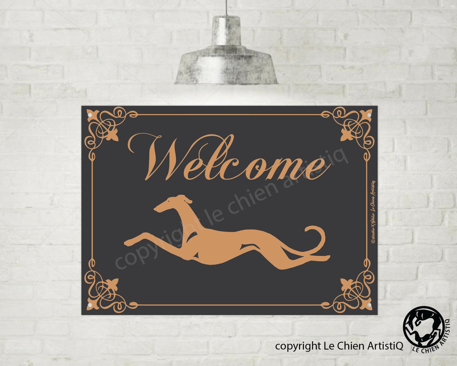 Galgo Espanol ! silhouet lijn welkom bord , kies uit vier kleuren !