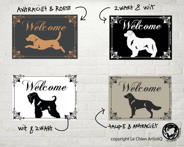 Golden Retriever springend ! silhouet lijn welkom bord , kies uit vier kleuren !