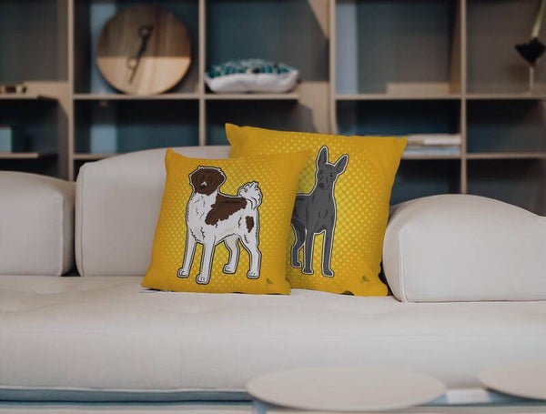 Basenji rood ! 2 kleurslagen kussen COMIC stijl ! achtergrond kleur naar keuze !