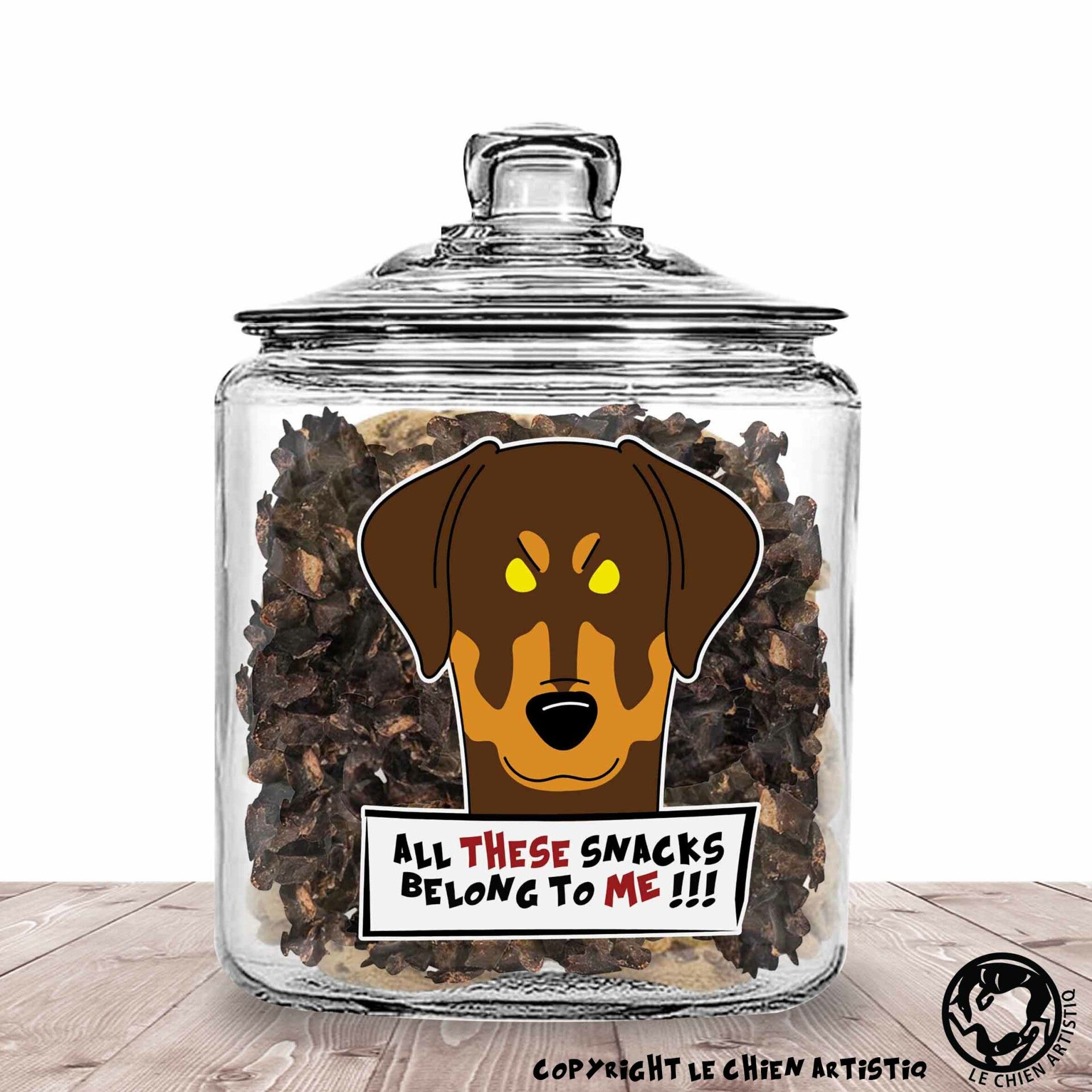 Dobermann ! Angry Dogs Glazen Pot met of zonder Supersnacks! personaliseerbaar !