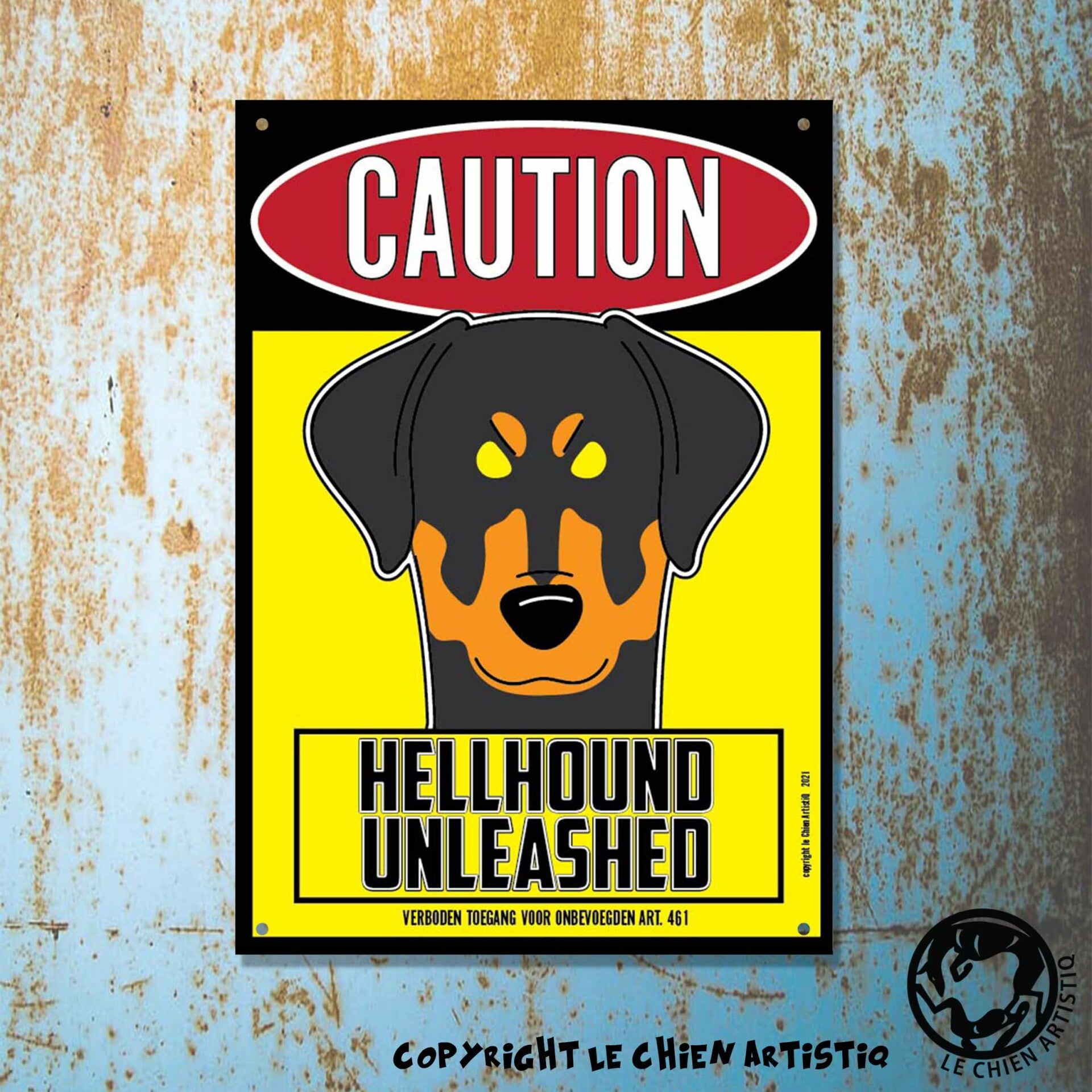 Dobermann ! waakbord ANGRY DOGS geel ! 2 kleurslagen !