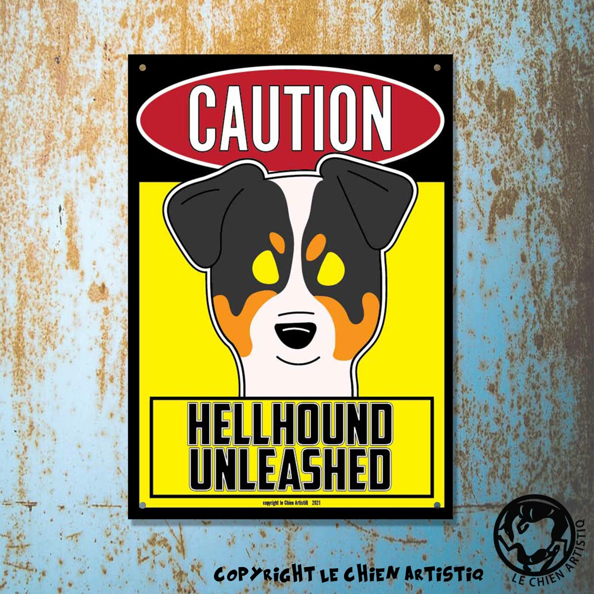 Jack Russell Terrier gladharig ! waakbord ANGRY DOGS geel ! 2 kleurslagen !