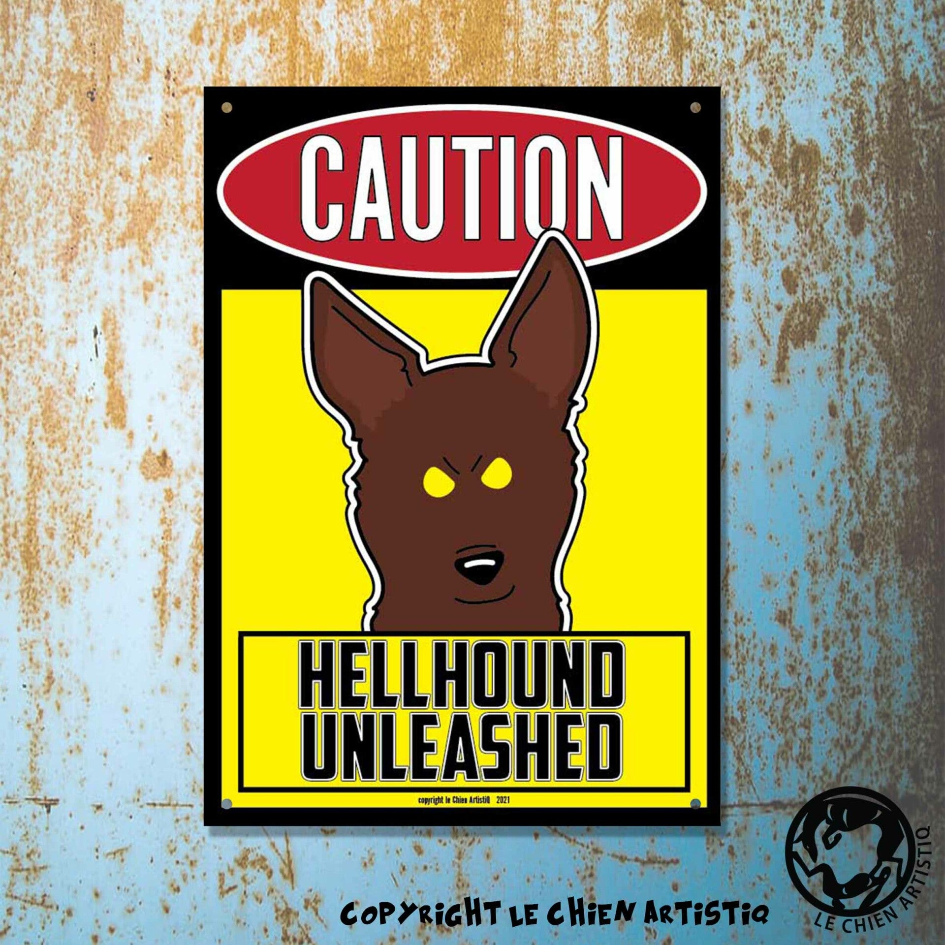 Australian Kelpie ! waakbord ANGRY DOGS geel ! 4 kleurslagen !