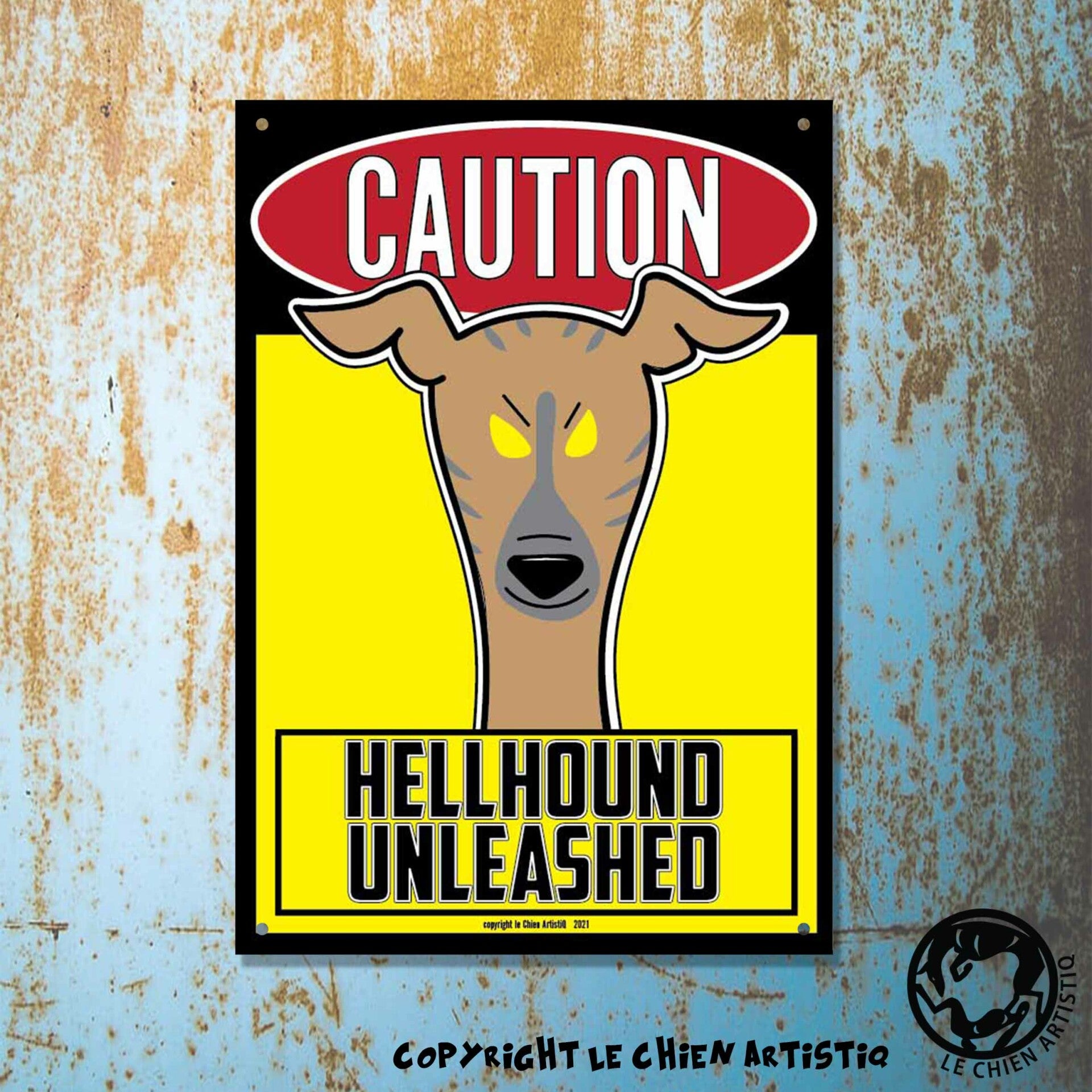 Whippet ! waakbord ANGRY DOGS geel ! 3 kleurslagen !
