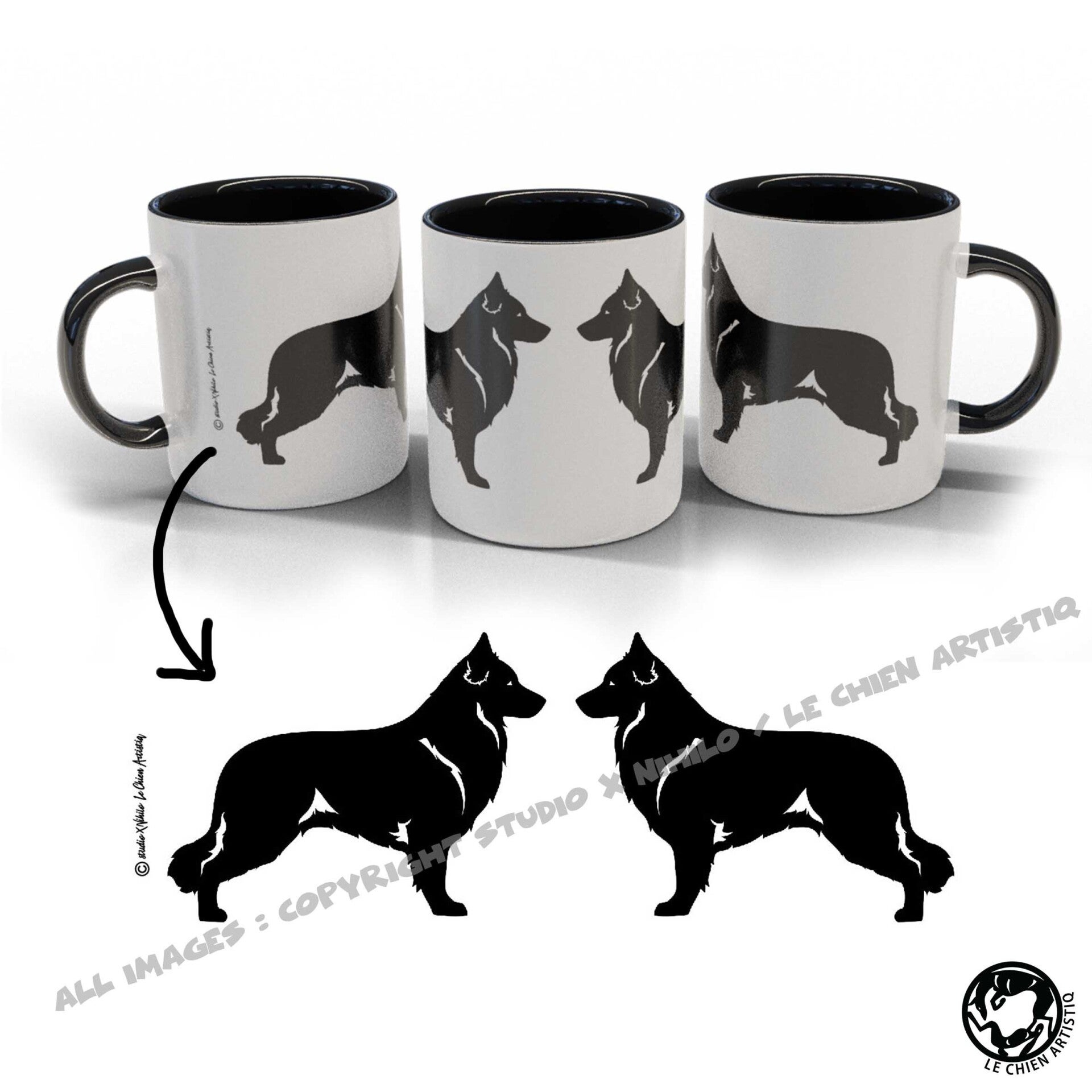 Witte Herdershond ! CLASSY wit / zwart beker