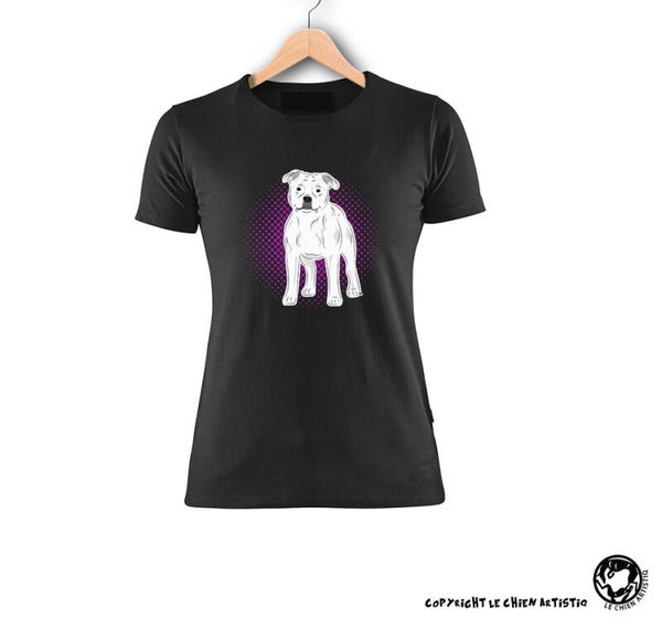 Staffordshire Bull Terrier ! "Comic" T-shirt > Dames of Unisex model, DRIE kleurslagen!
