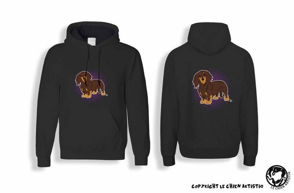 Teckel Langharig ! Comic style Hoodie, VIJF kleurslagen!